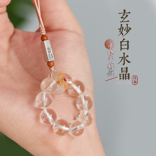 白水晶手機鏈掛件手撚指環防摔手機殼吊飾掛飾禮物