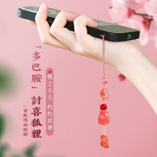 多巴胺討喜狐貍手機鏈女單身蜜桃瑪瑙掛飾防摔掛繩掛件