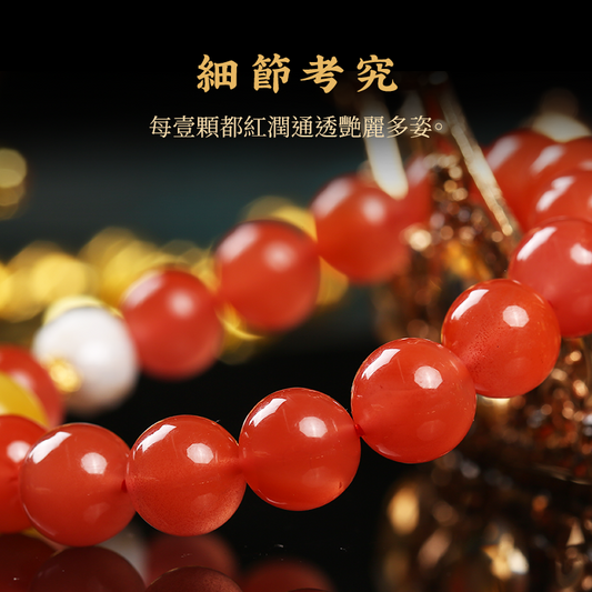 【收藏級】7A+川料冰透南紅蜜蠟手鏈淡水珍珠龍九子水晶手串送禮