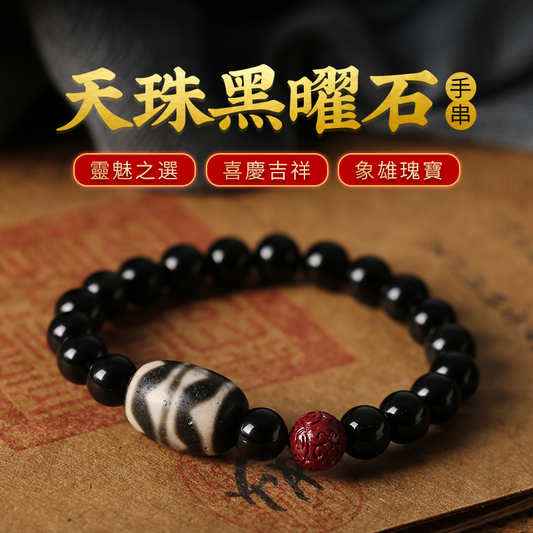 天珠手串男女西藏吉祥物正品黑曜石手鏈朱砂情侶