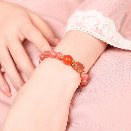 【賜花喜緣】桃花紅紋石手鏈女桃之夭夭心動粉澳寶手串