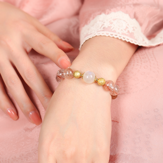 正果相遇甜蜜交織 白月光粉晶手鏈女 高顏值粉水晶手串