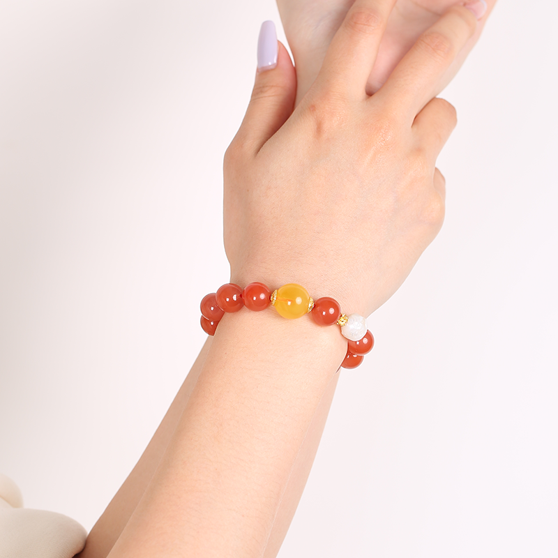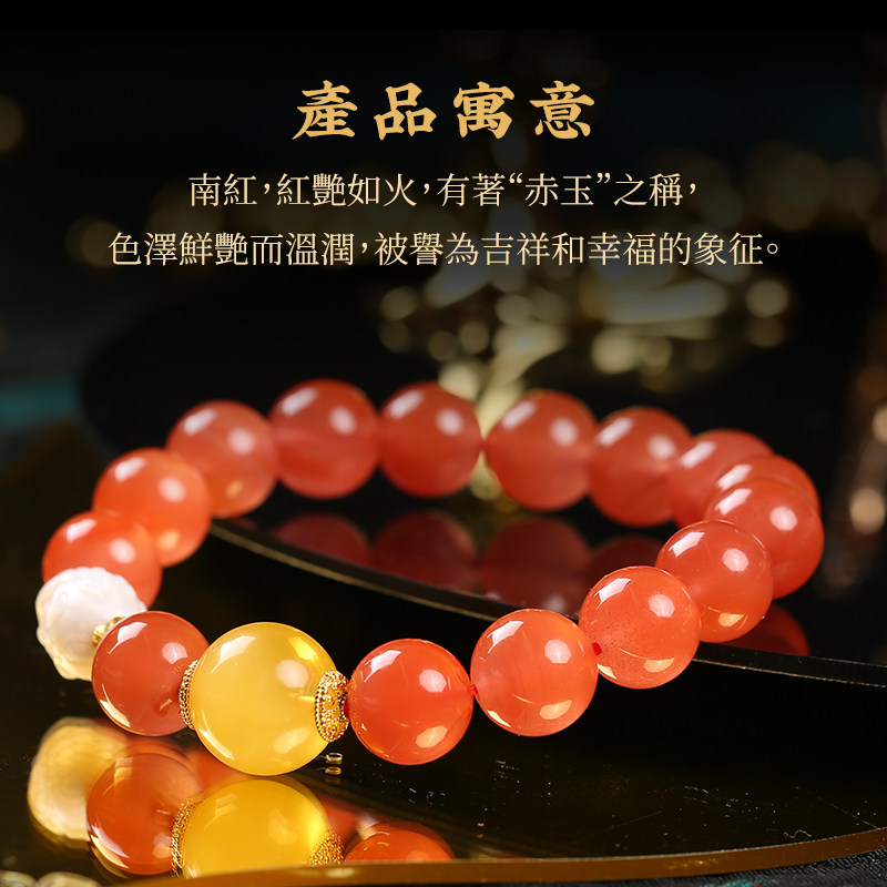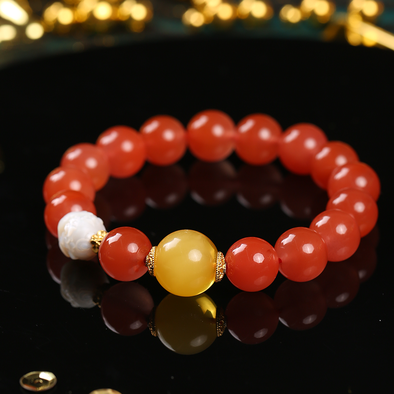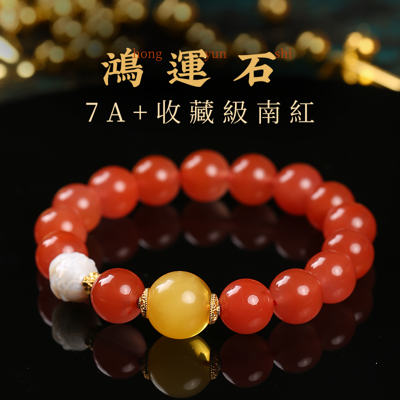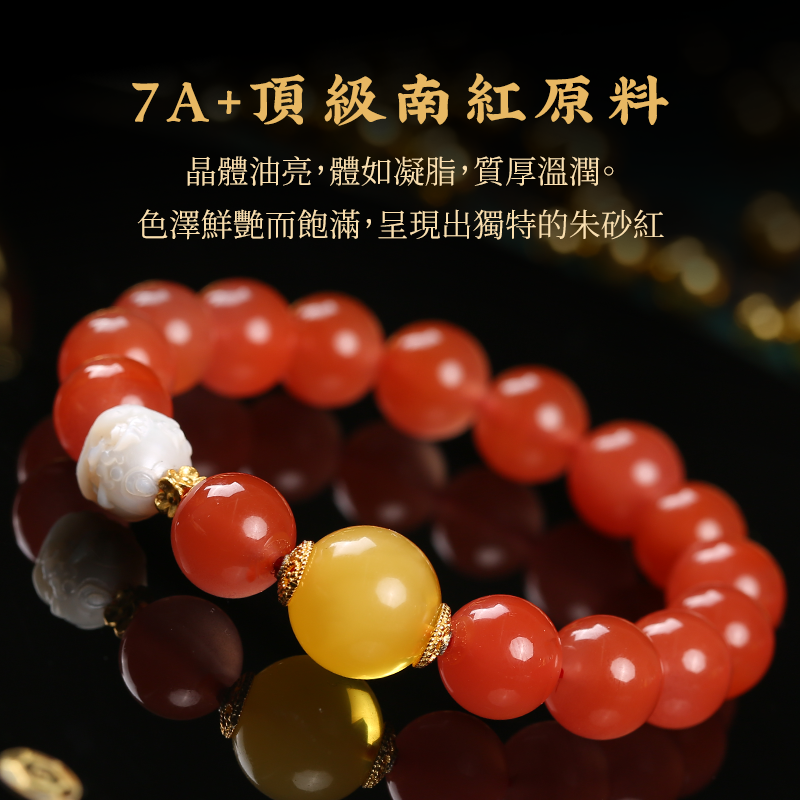 【收藏級】7A+川料冰透南紅蜜蠟手鏈淡水珍珠龍九子水晶手串送禮
