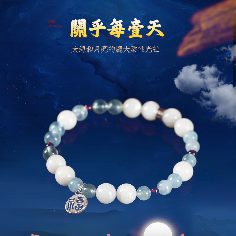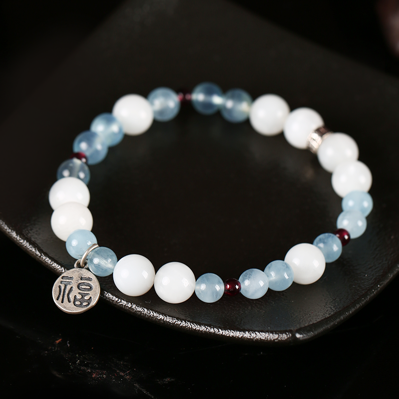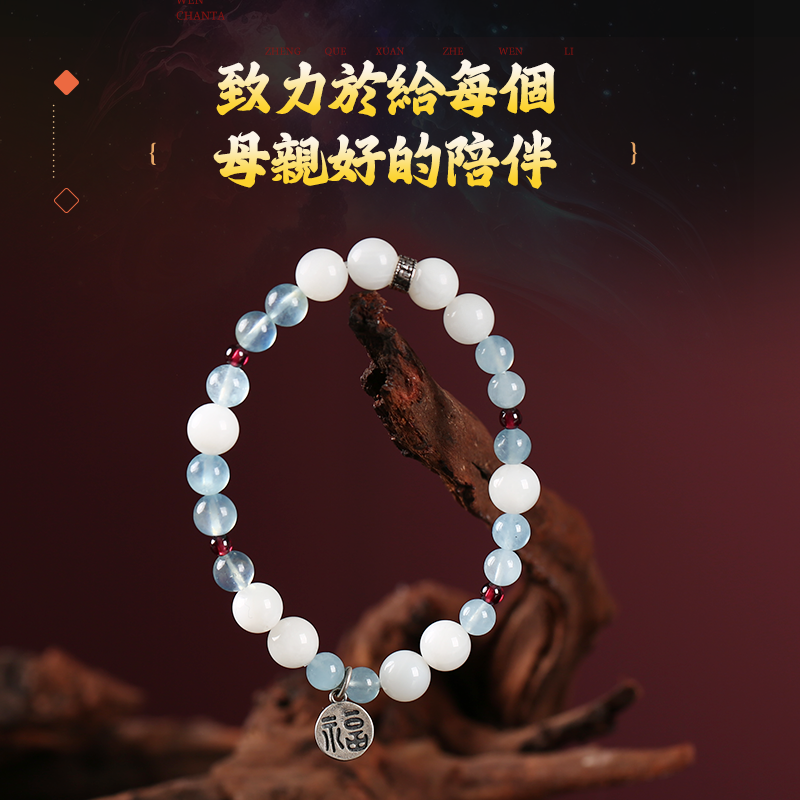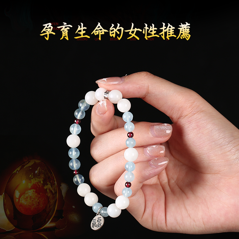 海藍寶月光石手鏈女孕婦石榴石準媽媽水晶手串