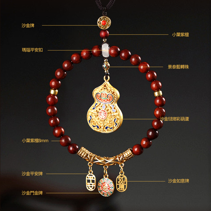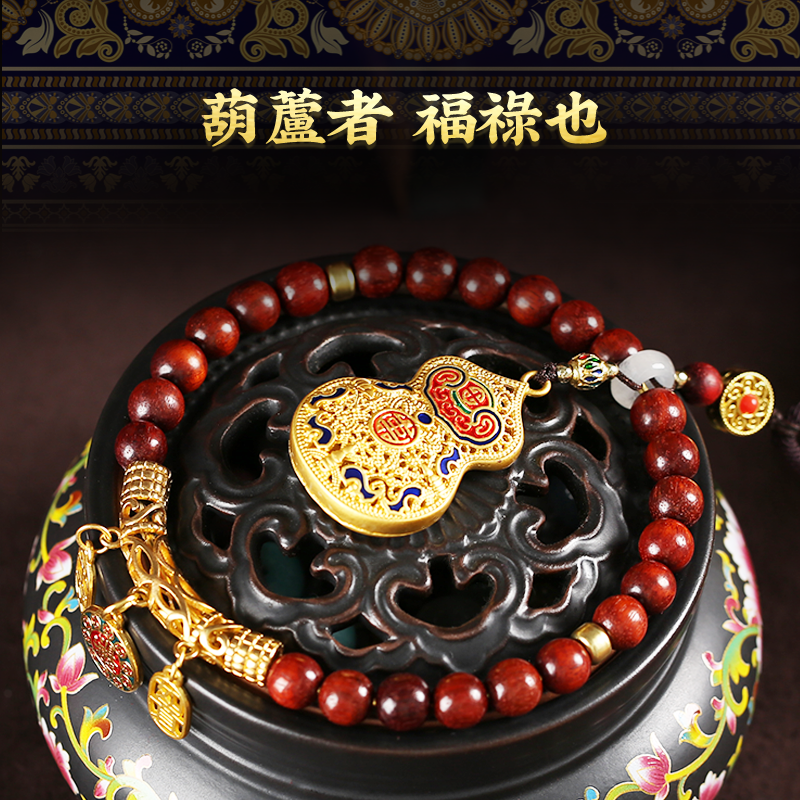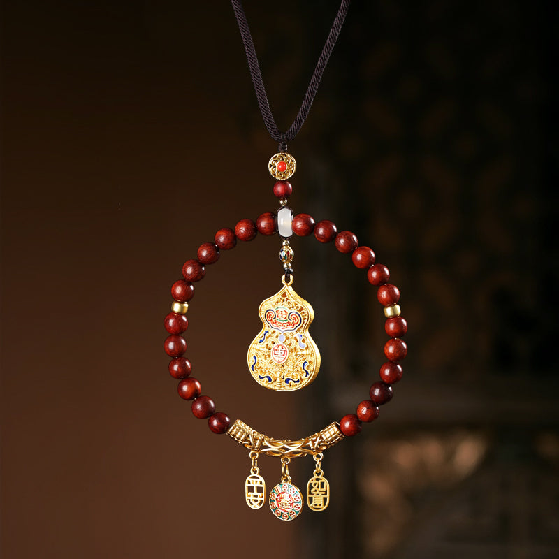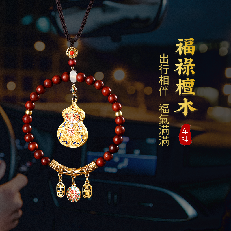 黃銅葫蘆小葉紫檀車掛福祿吉祥汽車後視鏡掛件掛飾