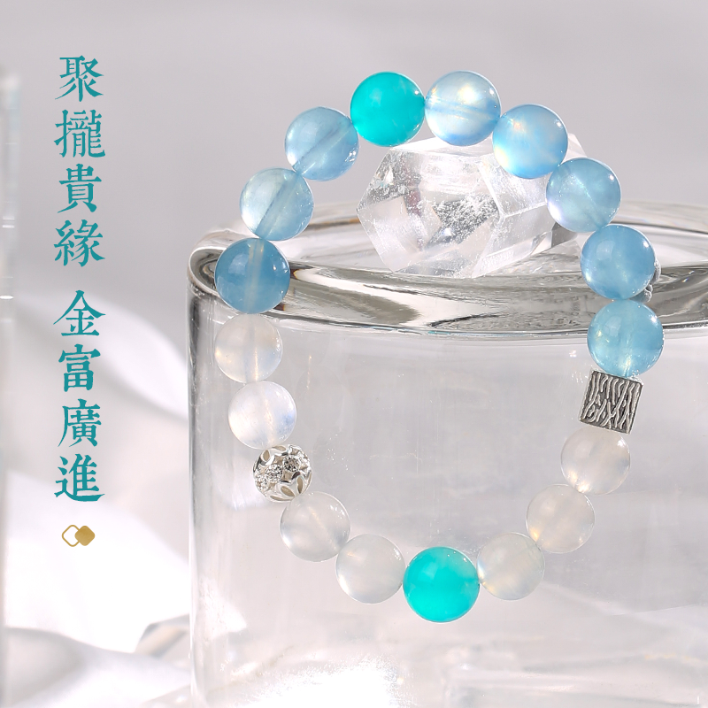 秘魯莫桑比克天河石海藍寶10mm單圈女款