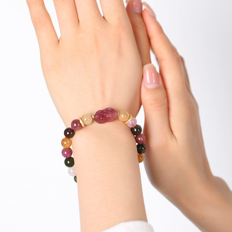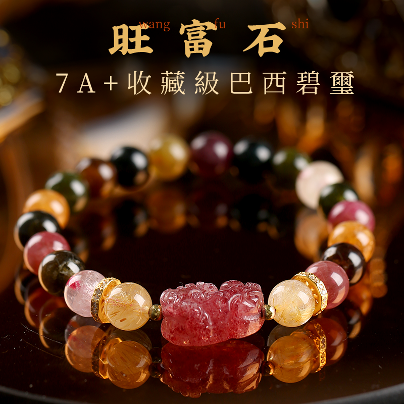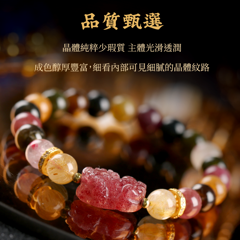 粉紅佳人貔貅碧玺发晶手鏈