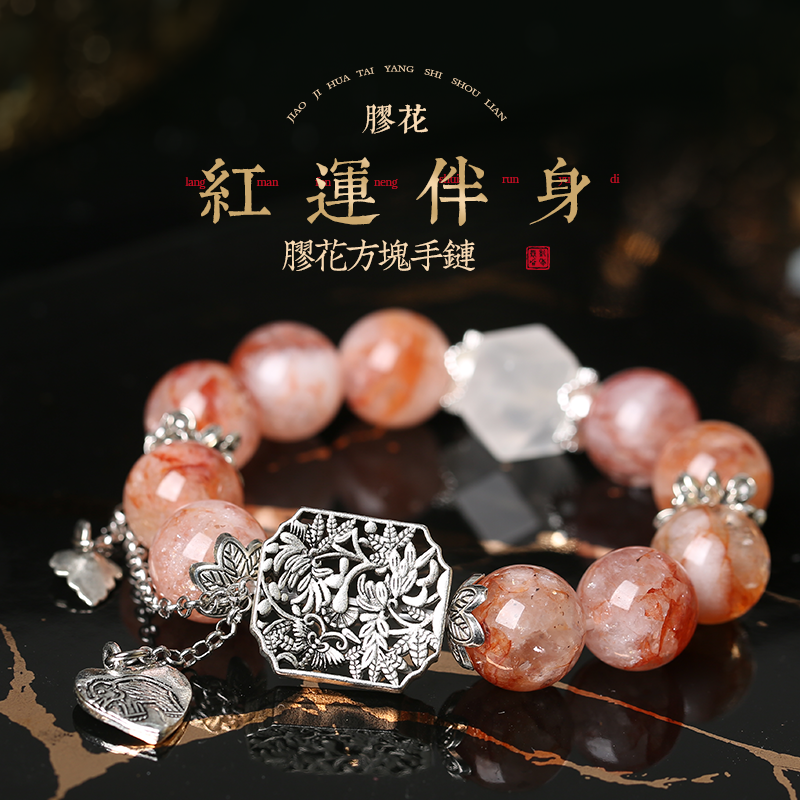 【紅運伴身】橘紅膠花超大手鏈召財納福轉運