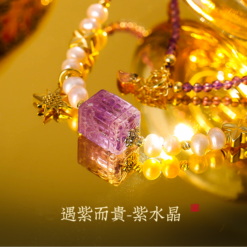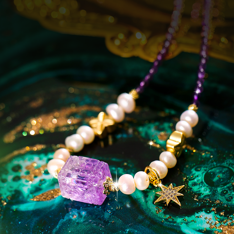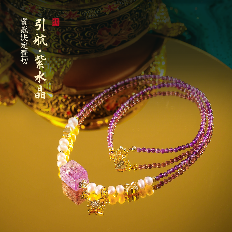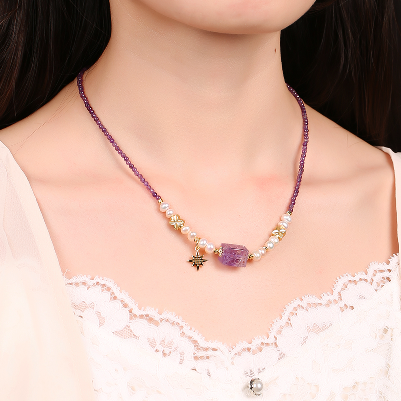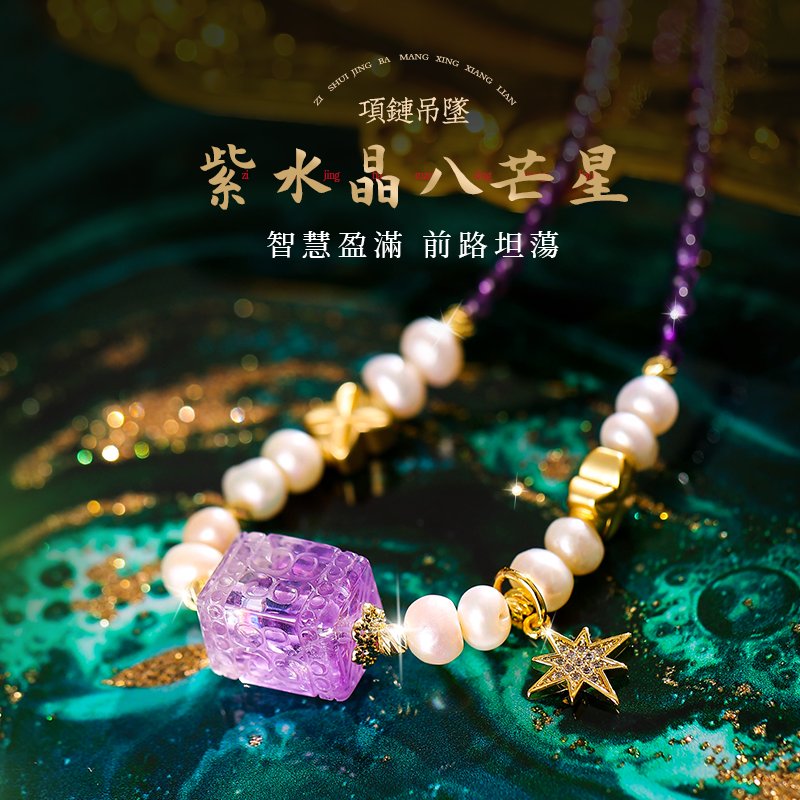 紫水晶八芒星吊墜女 紫氣東來 引航燈塔 淡水珍珠項鏈