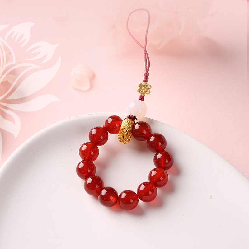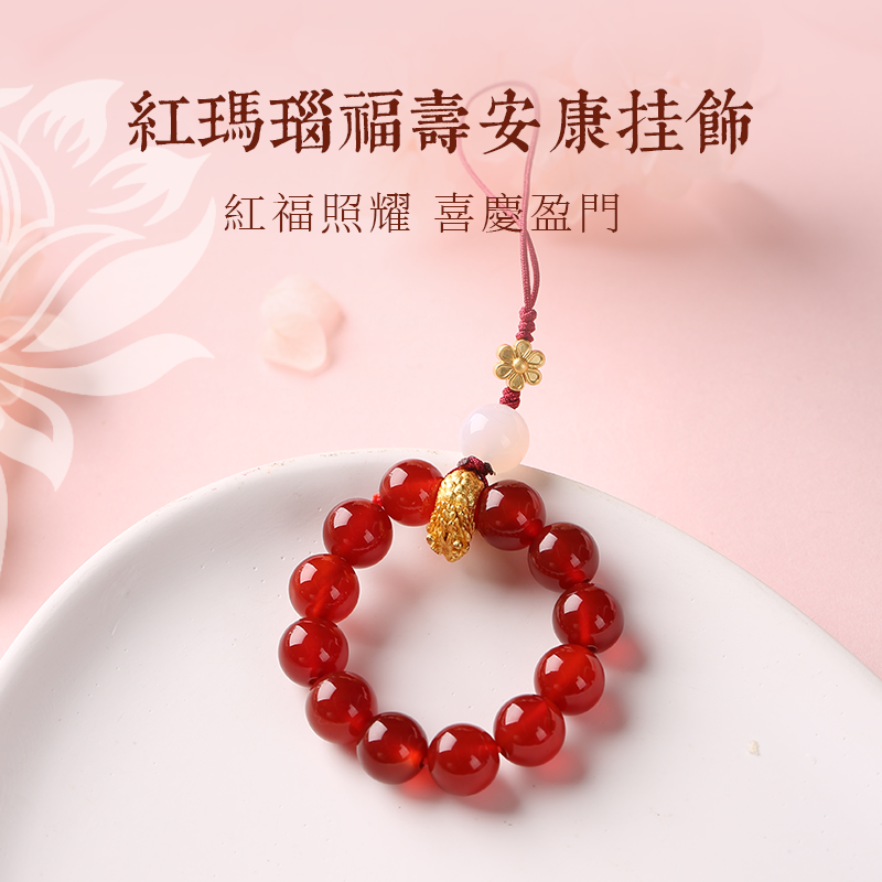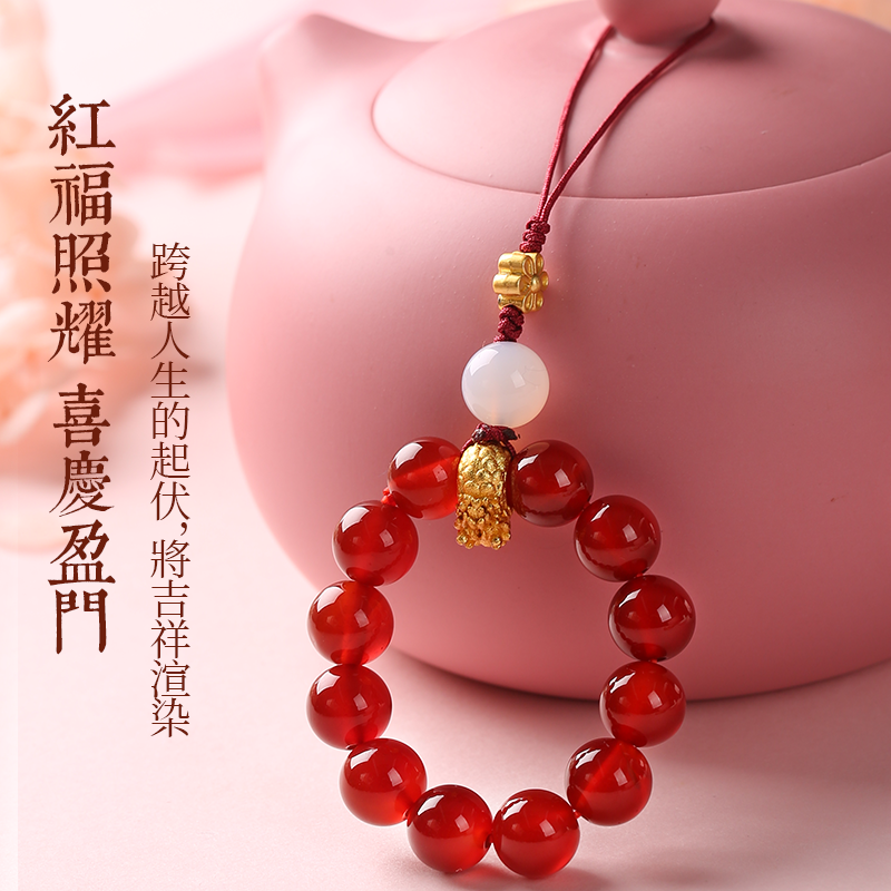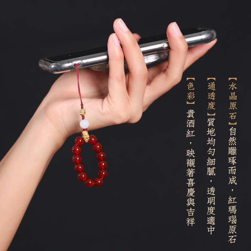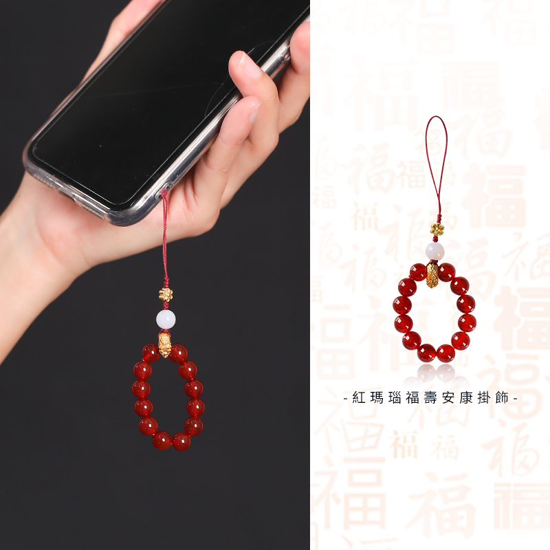 紅瑪瑙福壽安康手機鏈金龍環抱吉兆掛繩指環防摔手撚防丟掛飾