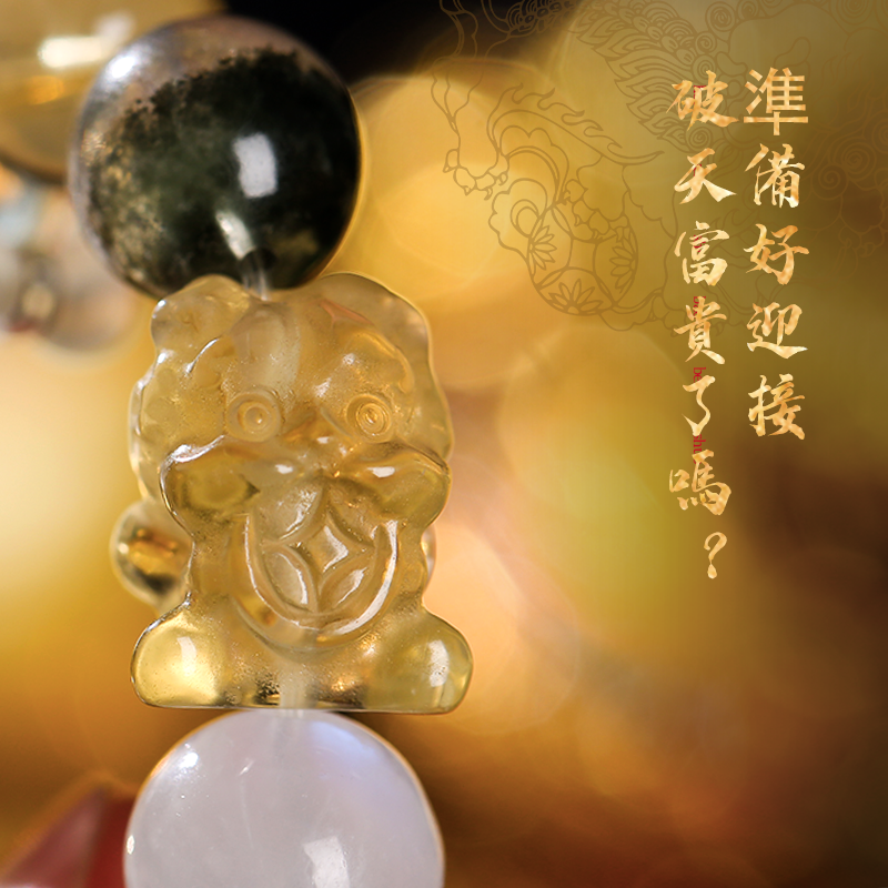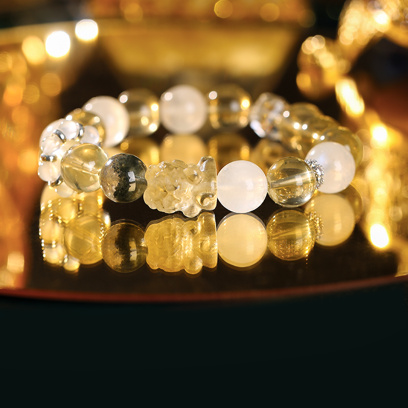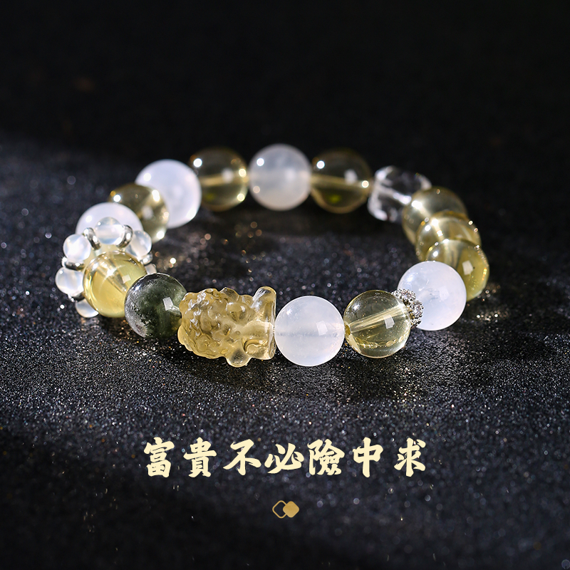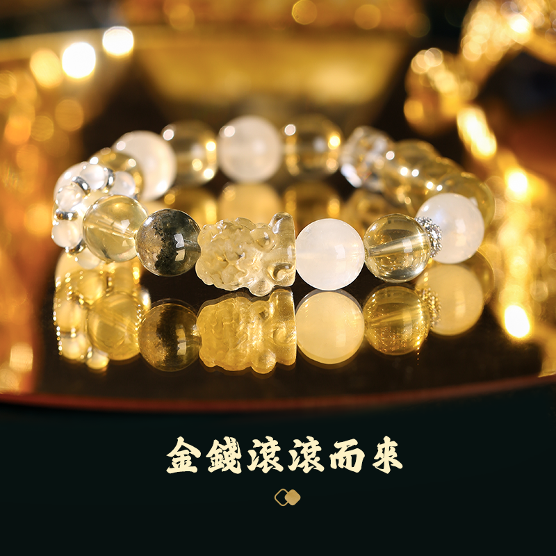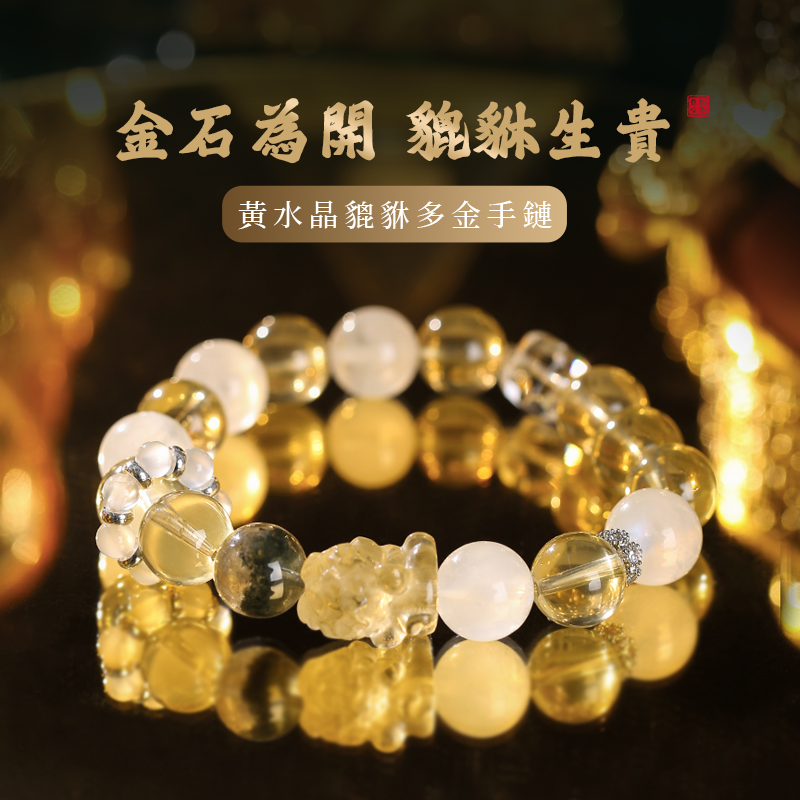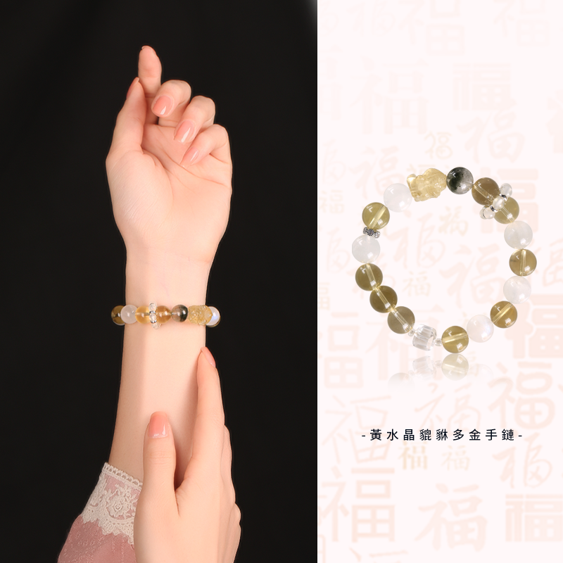 黃水晶貔貅多金手鏈 左右開弓富貴納金 綠幽靈水晶手串