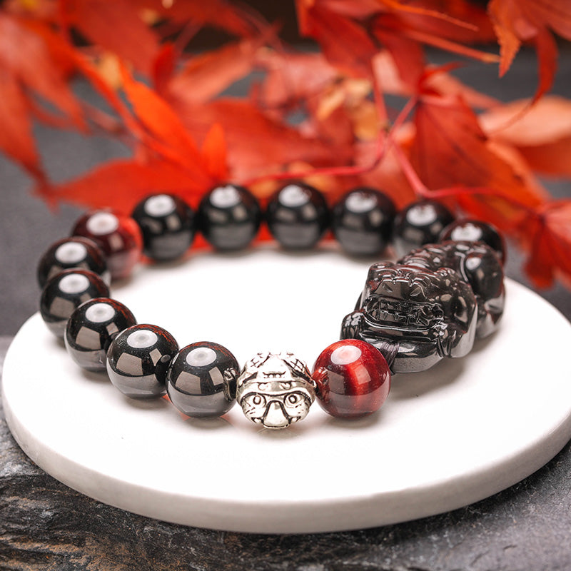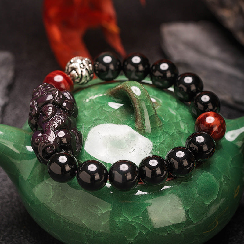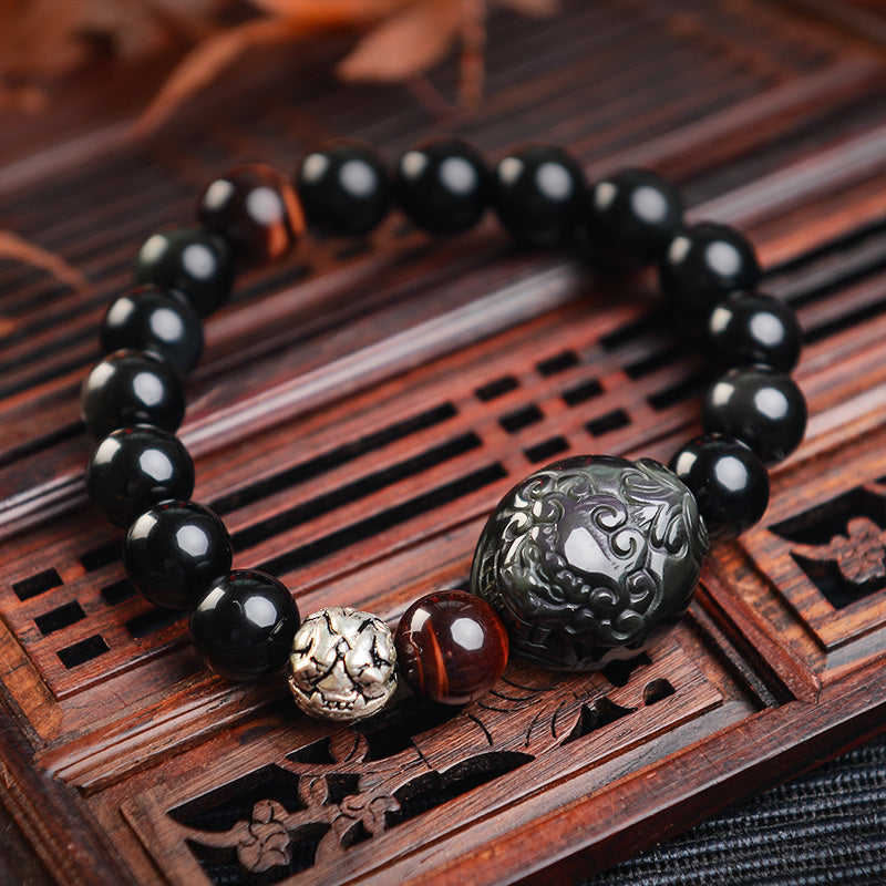 選用純正高品質的黑曜石,經由精心雕琢並融入貔貅的傳統造型,搭配耐用的手鏈設計,寓意招財聚福,避邪守護。黑曜石自古被譽為「護身與財富之石」,具有淨化負能量、招來財運的功效,能為佩戴者帶來持久的平安與財氣。
